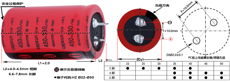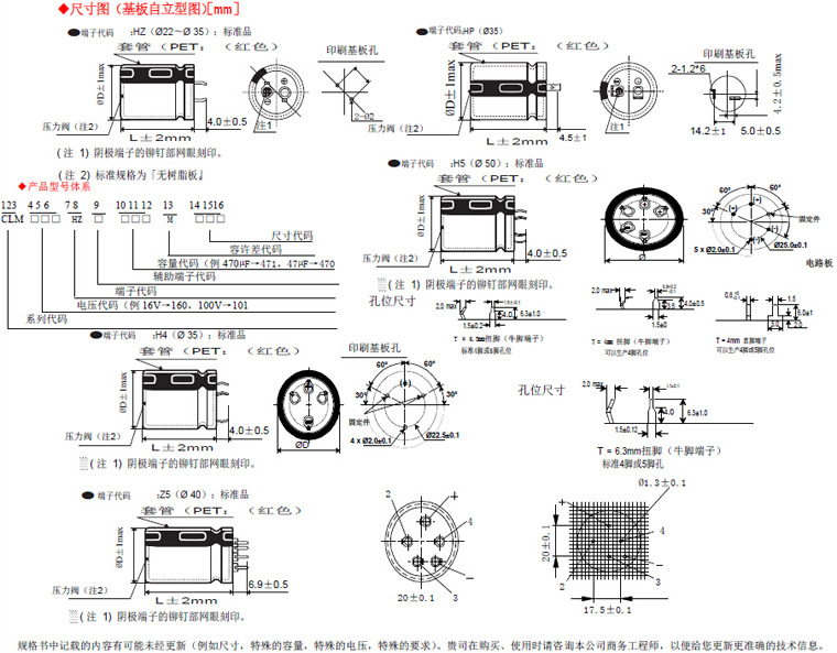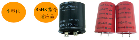 ●保证105℃ 10000小时准品。(叠加纹波电流);